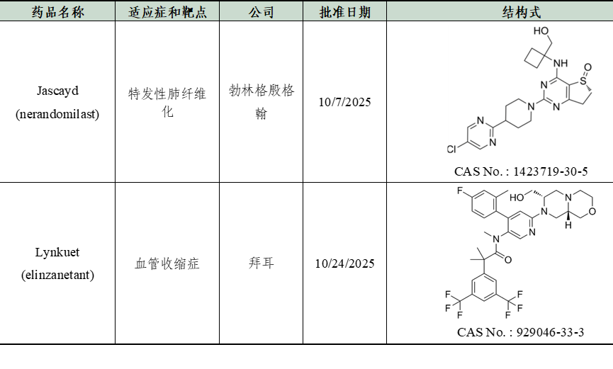 2025年10月FDA批准2种新药,具体如下: